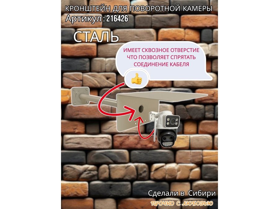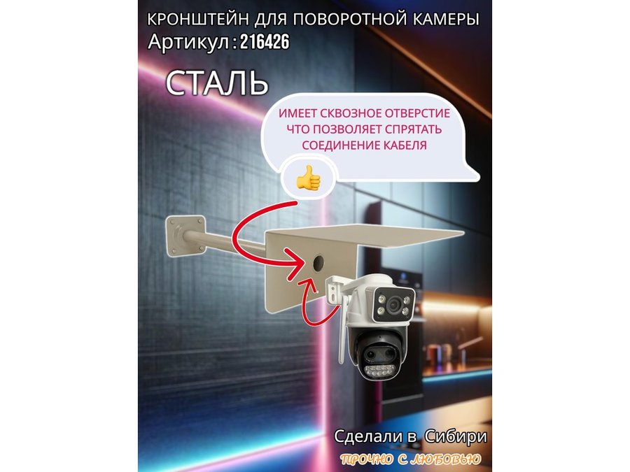 • Стальной кронштейн позволяет вынести камеру от стены на 50 см.