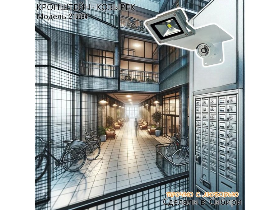 В корзину Купить в 1 клик Кронштейн-козырёк для камеры "POHER-215116" с креплением прожектора, от дождя, сталь 2 мм, серый