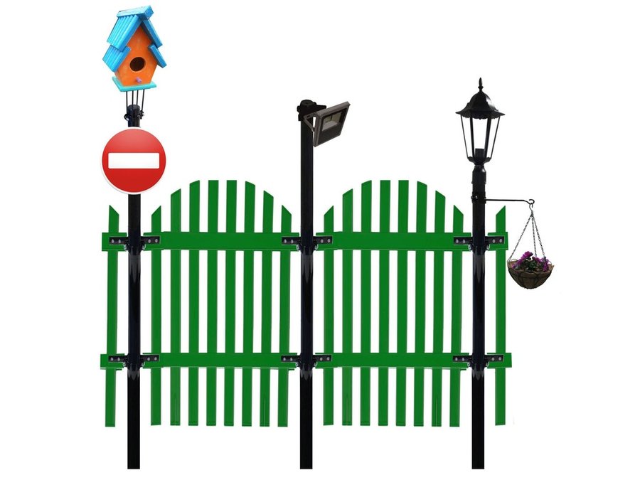 • "PODPORA  SVETLOMETY" ЧЁРНЫЙ кронштейн предназначен для крепления светодиодных прожекторов, светильников, видеокамер, усилителей, указателей, почтовых ящиков, скворечников, табличек,знаков на опору забора PODPORA VYSOKY  или PODPORA OBROVSKA диаметром 50мм