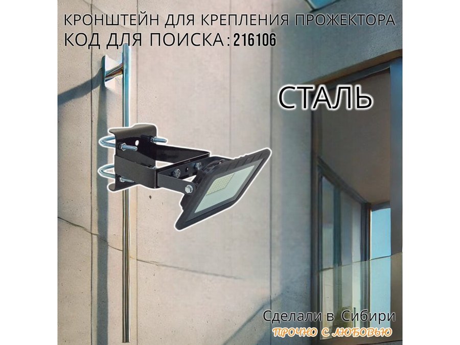 Кронштейн усиленный для крепления прожектора на трубе до 51мм "ПРОЖЕКРЕП-216106" сталь, цвет черный