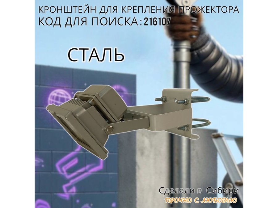 - Кронштейн усиленный предназначен для крепления светодиодных прожекторов на трубе диаметром от 15 до 51мм.
