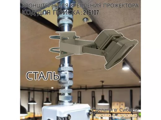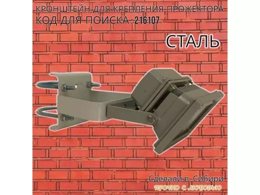 Кронштейн усиленный для крепления прожектора на трубе до 51мм "ПРОЖЕКРЕП-216107" сталь, цвет серый