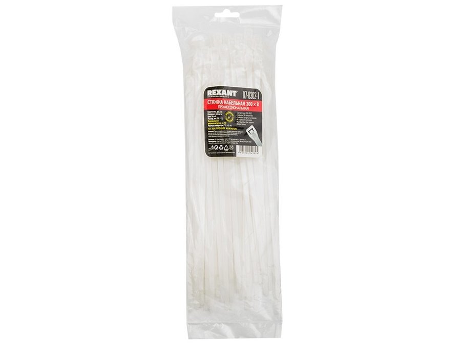 В корзину Купить в 1 клик 300х8 кабельный хомут (стяжка) белая (100 шт) профессиональная