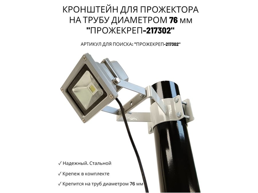 - Кронштейн позволяет быстро зафиксировать прожектор на трубу.