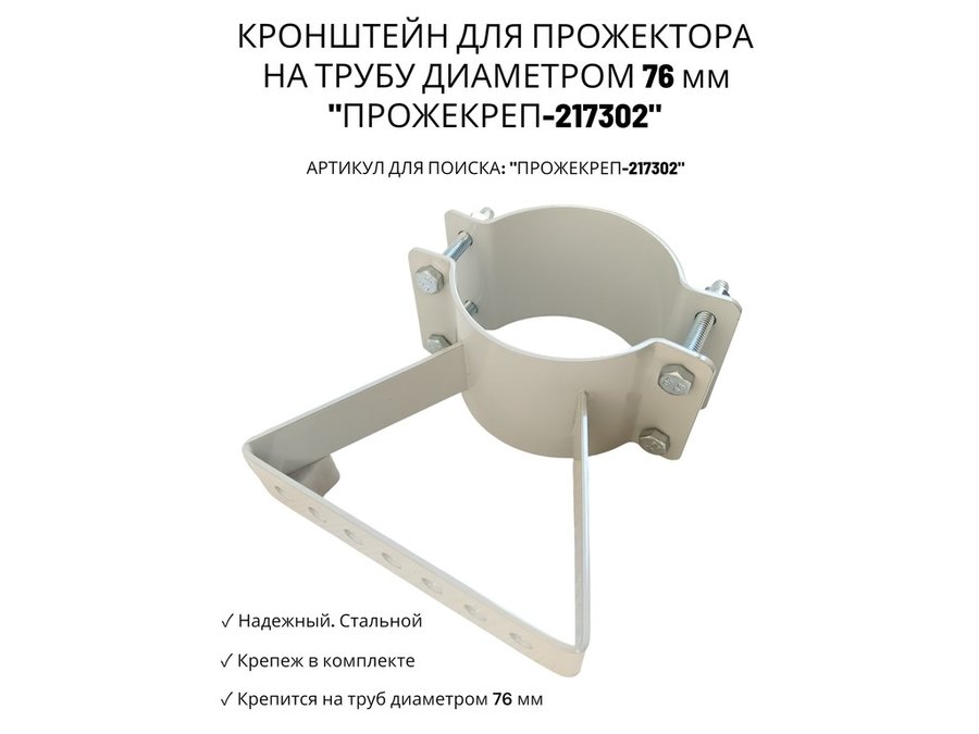 - Кронштейн усиленный предназначен для крепления светодиодных прожекторов на трубе диаметром 76 мм.На трубу крепится с помощью болтов с гайками.