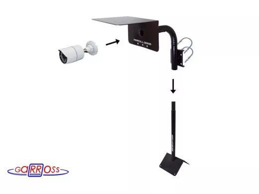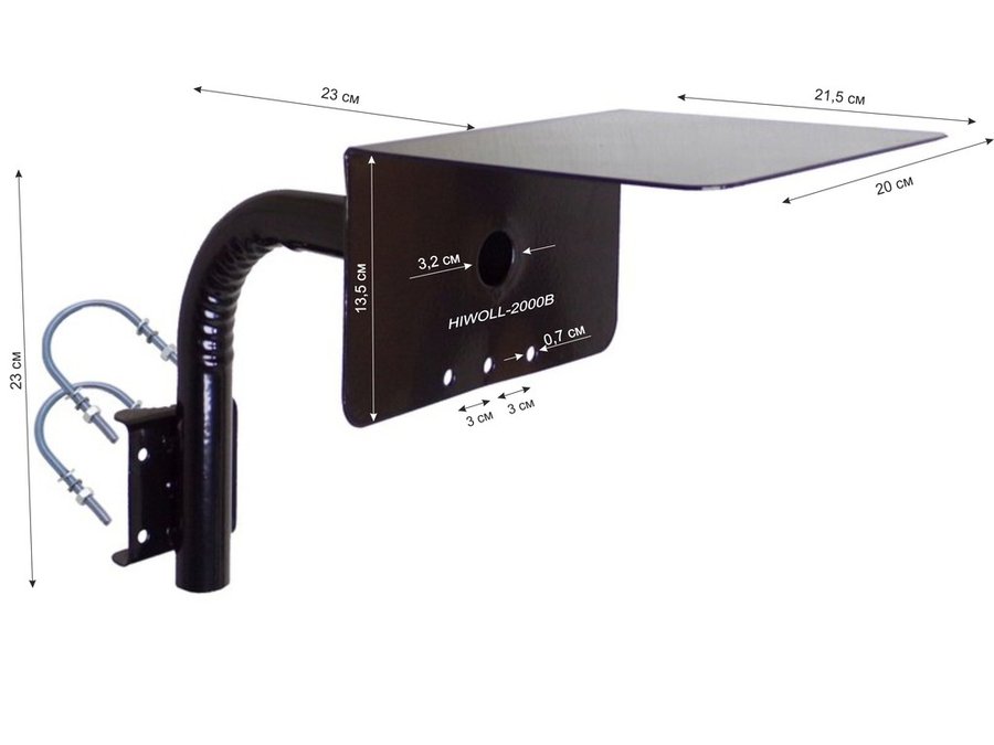Кронштейн "HIWOLL-2000B-121405" чёрный с хомутами и козырьком на мачту для видеокамеры и прожектора