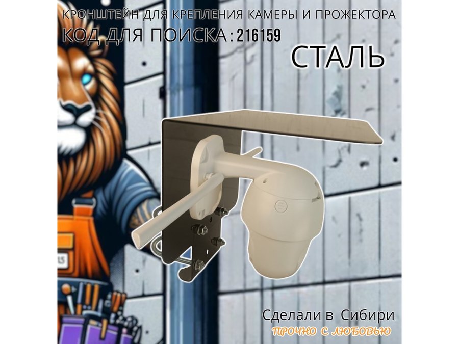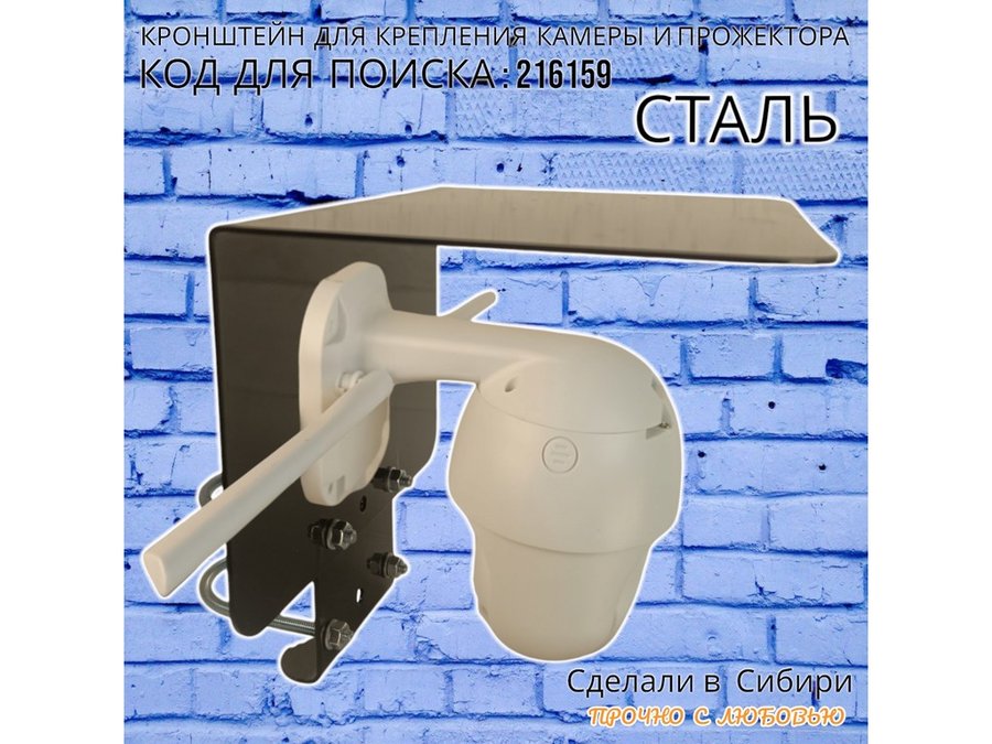 Кронштейн с козырьком на трубу для камеры и прожектора "ПРОЖЕКРЕП-216159" сталь, два хомута, черный