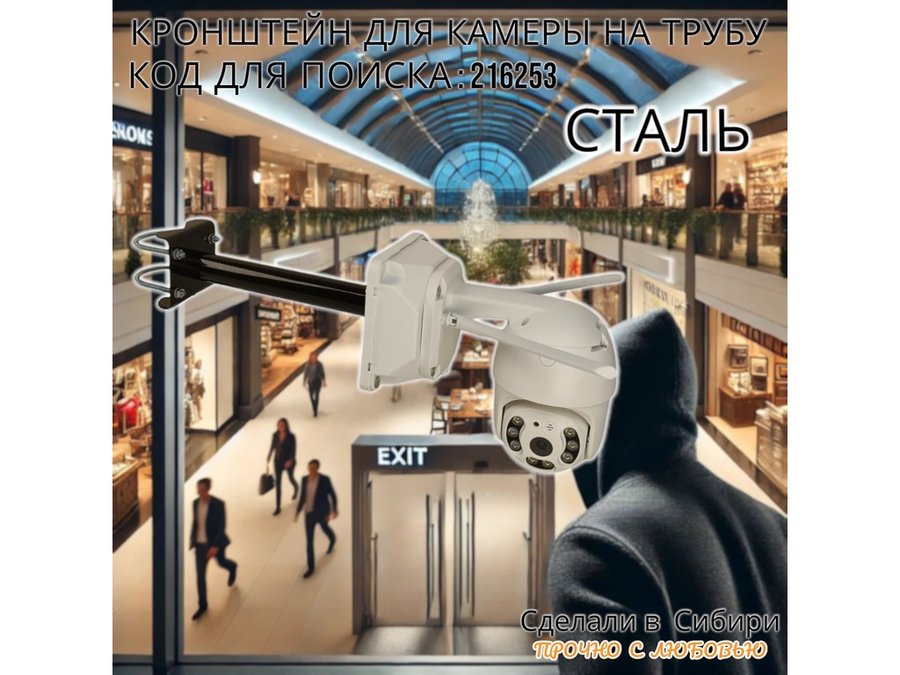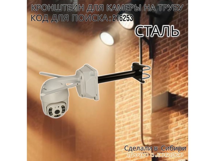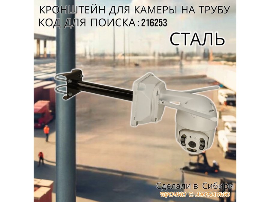 - Кронштейн предназначен для крепления поворотной или цилиндрической камеры на трубу.