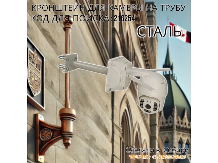 - Кронштейн предназначен для крепления поворотной или цилиндрической камеры на трубу.