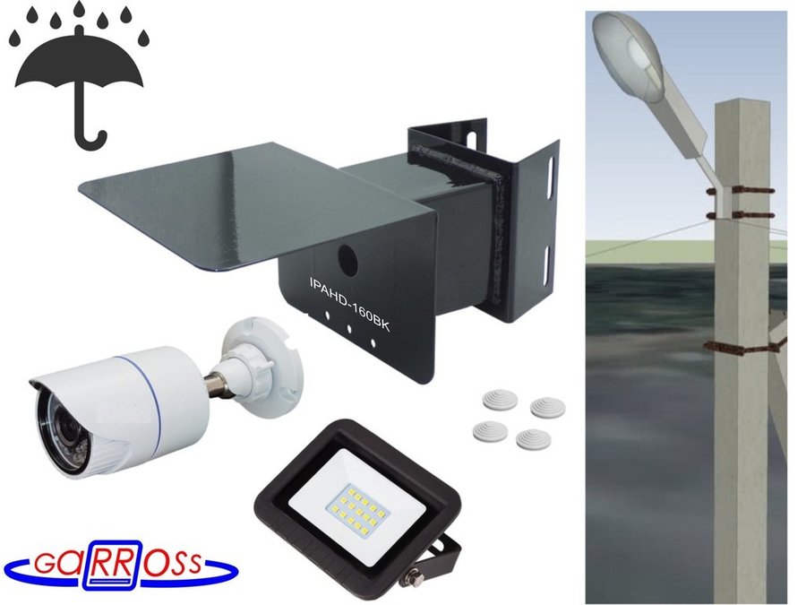 В корзину Купить в 1 клик Кронштейн для видеокамеры и прожектора с коробкой и козырьком чёрный "IPAHD-160BK-138420" на столб