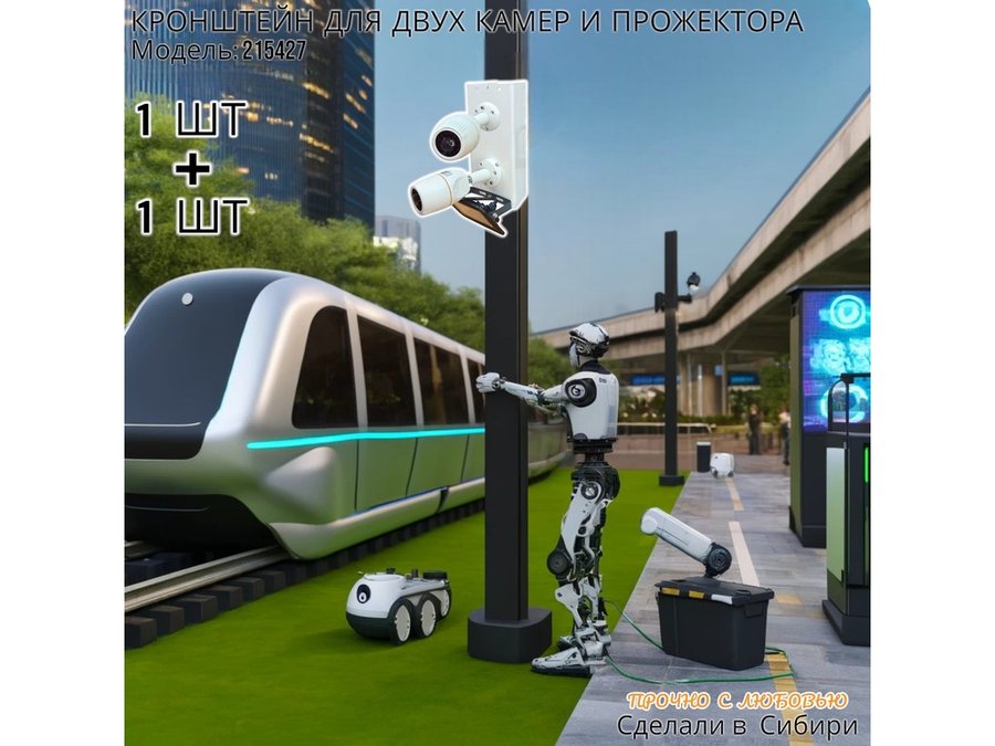 В корзину Купить в 1 клик Кронштейн для двух камер и прожектора на столб серебристый "IPAHD-201SL-89771" под СИП-ленту