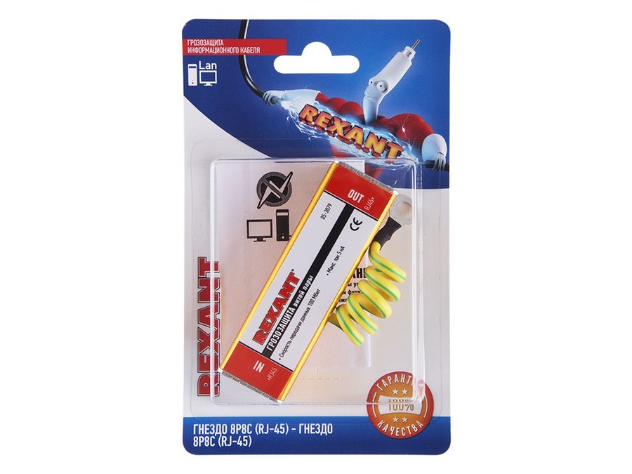 В корзину Купить в 1 клик Грозозащита информационного кабеля, (гнездо 8Р8С (Rj-45) - гнездо 8Р8С (Rj-45)) REXANT (в упак. 1шт