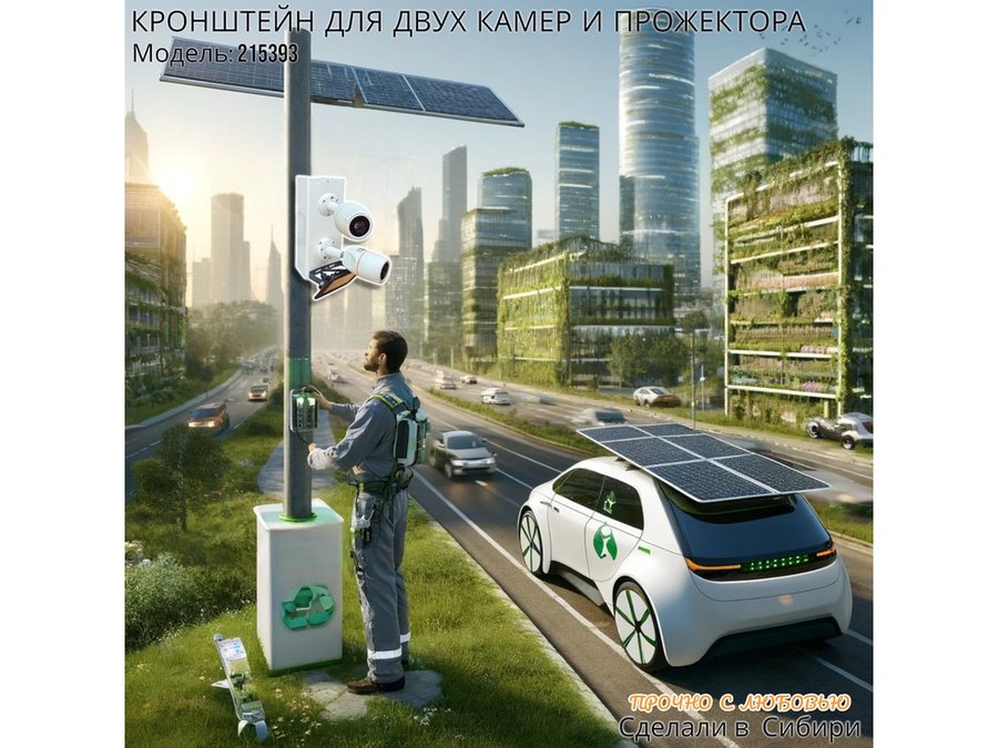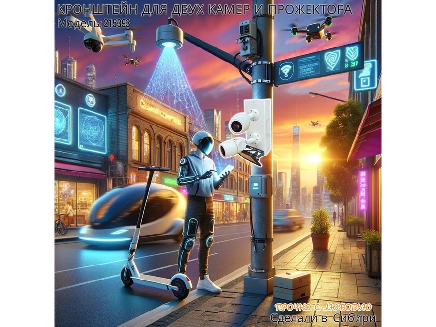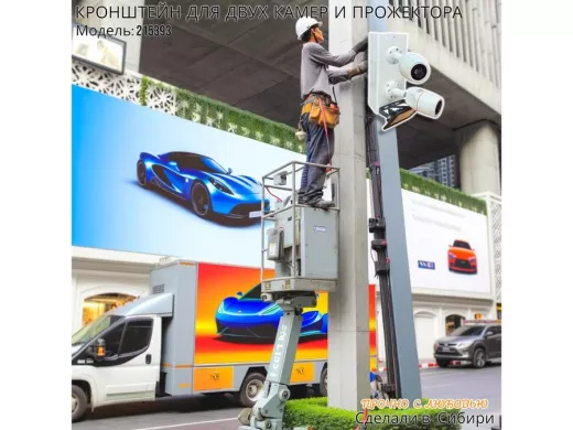 Кронштейн для крепления двух камер и прожектора на столб при помощи СИП - ленты или хомутов
