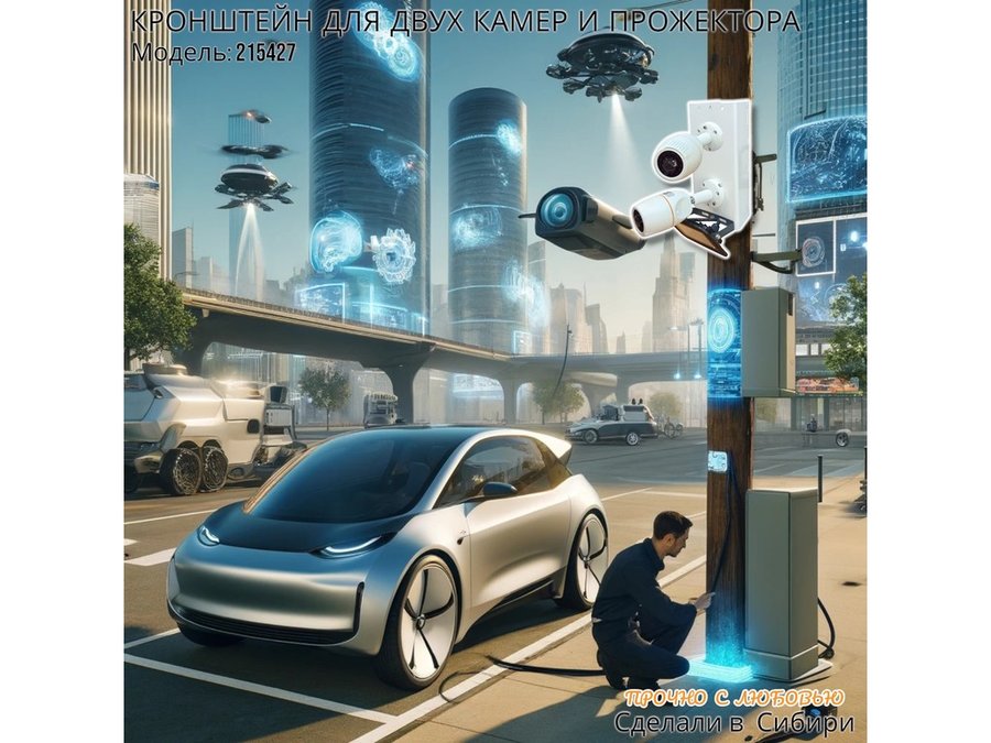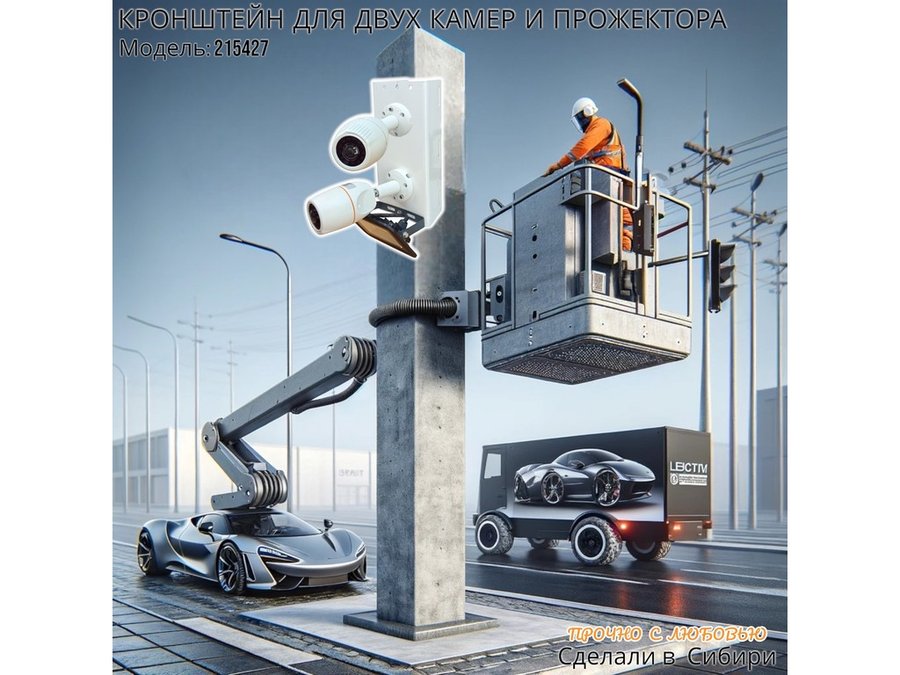Набор 2 шт. Кронштейн для крепления двух камер и прожектора на столб при помощи СИП - ленты или хомутов