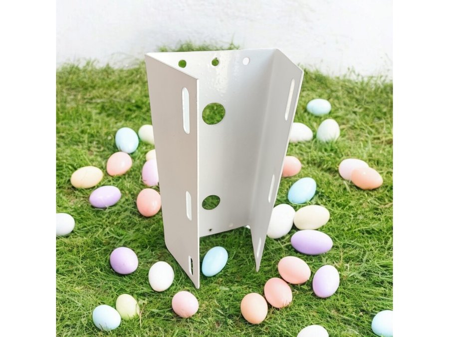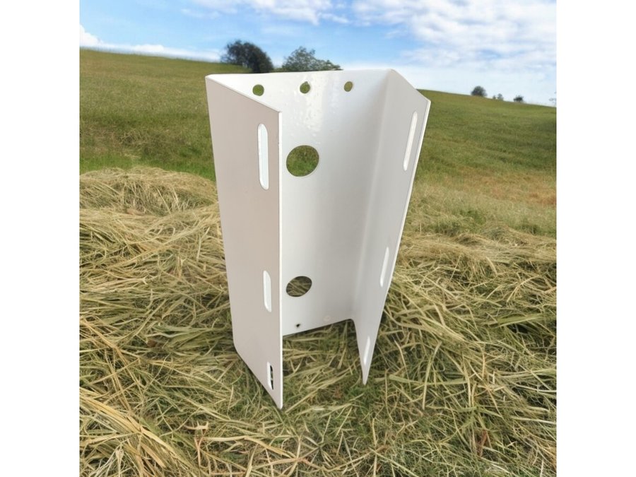 - Кронштейн позволяет быстро зафиксировать прожектор на столбе при помощи ленты или хомутов, не сверля сам столб.