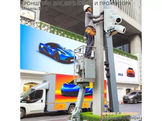 Набор 2шт. Кронштейн для двух камер и прожектора на столб белый "IPAHD-201W-215427" под СИП-ленту