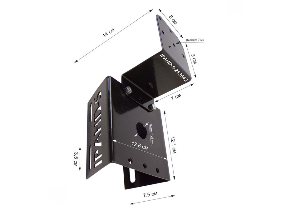 Кронштейн для камеры и прожектора на столб "IPAHD-5-213641" черный под СИП-ленту, хомут, вылет 75мм