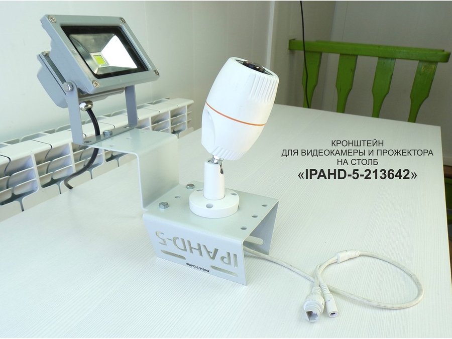 - Кронштейн позволяет быстро зафиксировать камеру и прожектор на столбе, не сверля его.