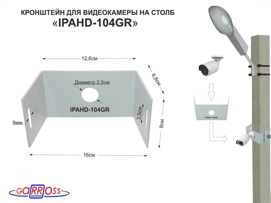В корзину Купить в 1 клик Кронштейн мини для одной камеры на столб "IPAHD-105GR-122425" серый под СИП-ленту