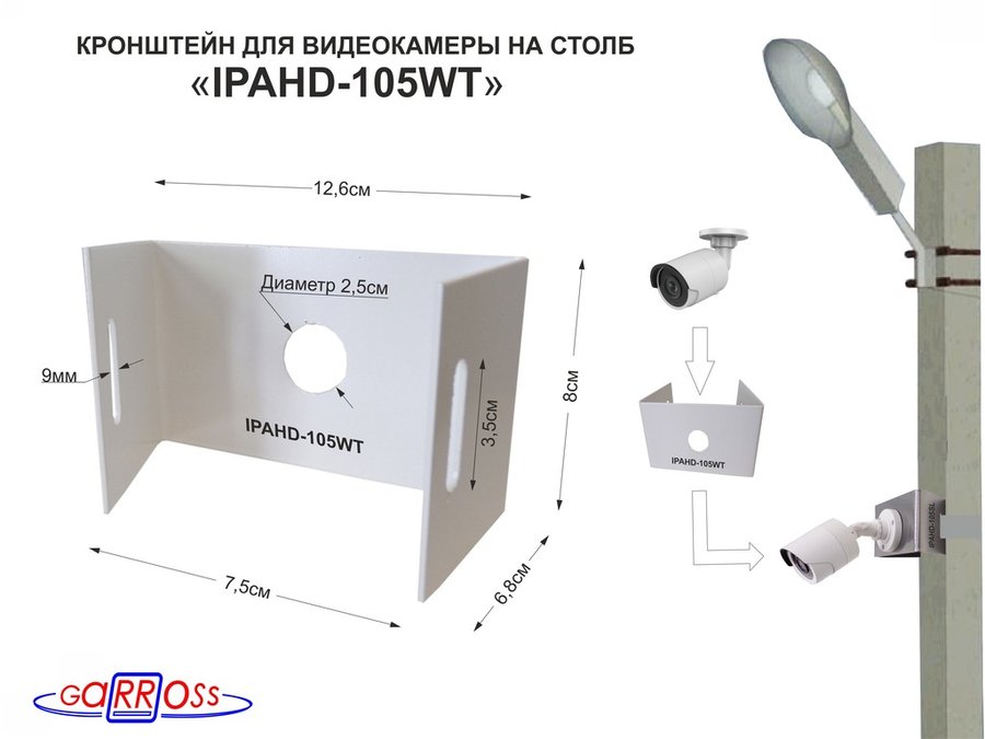 В корзину Купить в 1 клик Кронштейн мини для одной камеры на столб "IPAHD-105WT-202364" белый под СИП-ленту, 75мм
