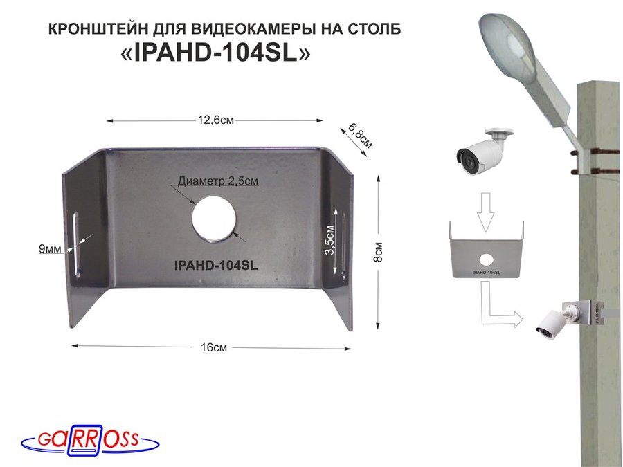 В корзину Купить в 1 клик Кронштейн мини для одной камеры на столб "IPAHD-104SL-89849" серебристый под СИП-ленту, 150мм