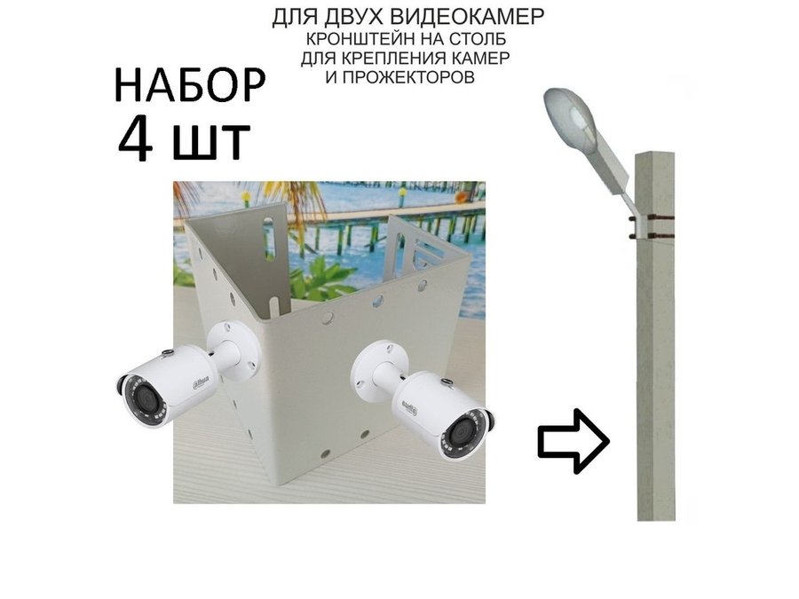 В корзину Купить в 1 клик Набор 4 шт. Кронштейн для двух камер и прожекторов на столб серый "IPAHD-5-215443" под СИП ленту