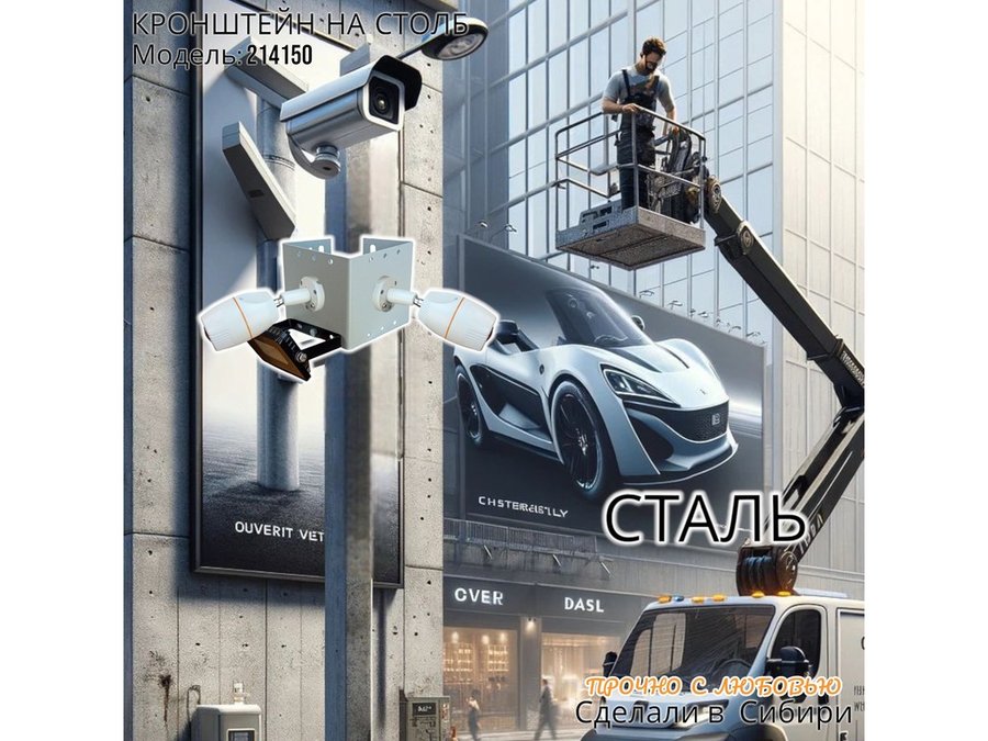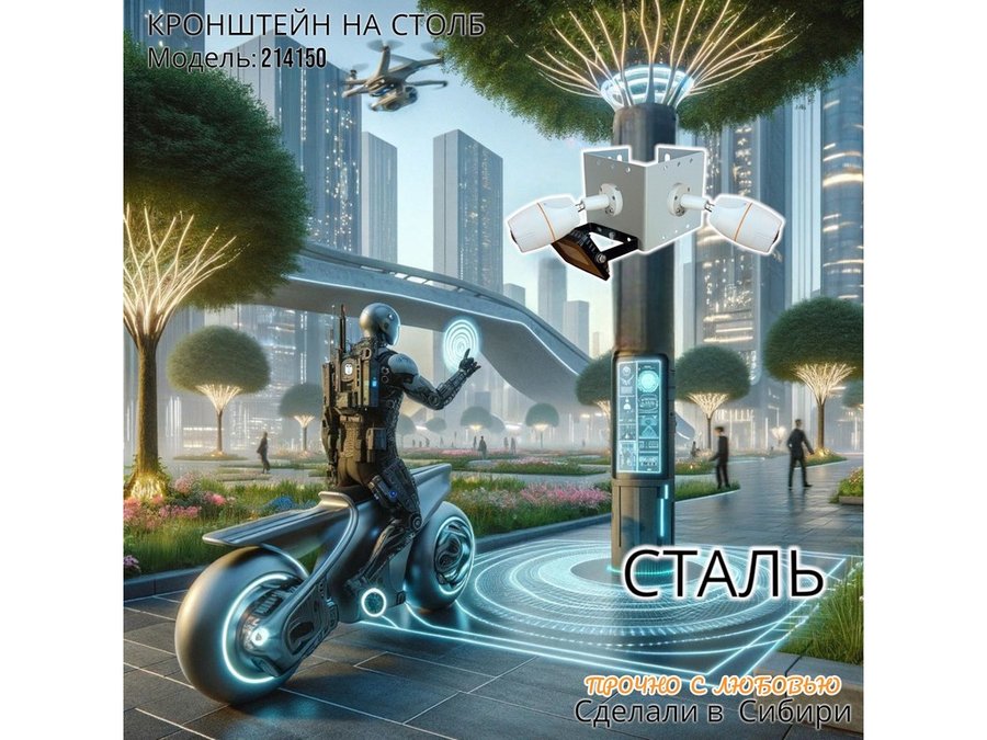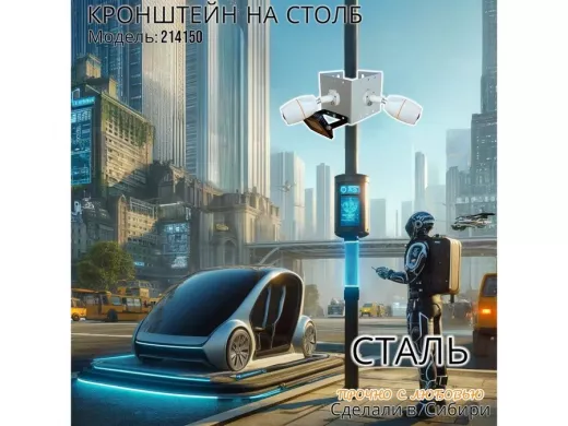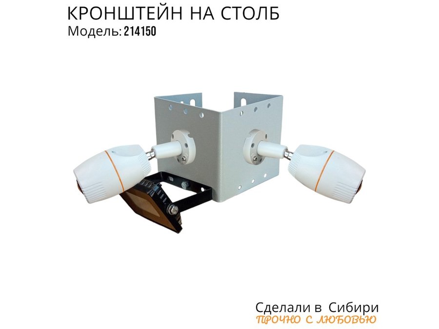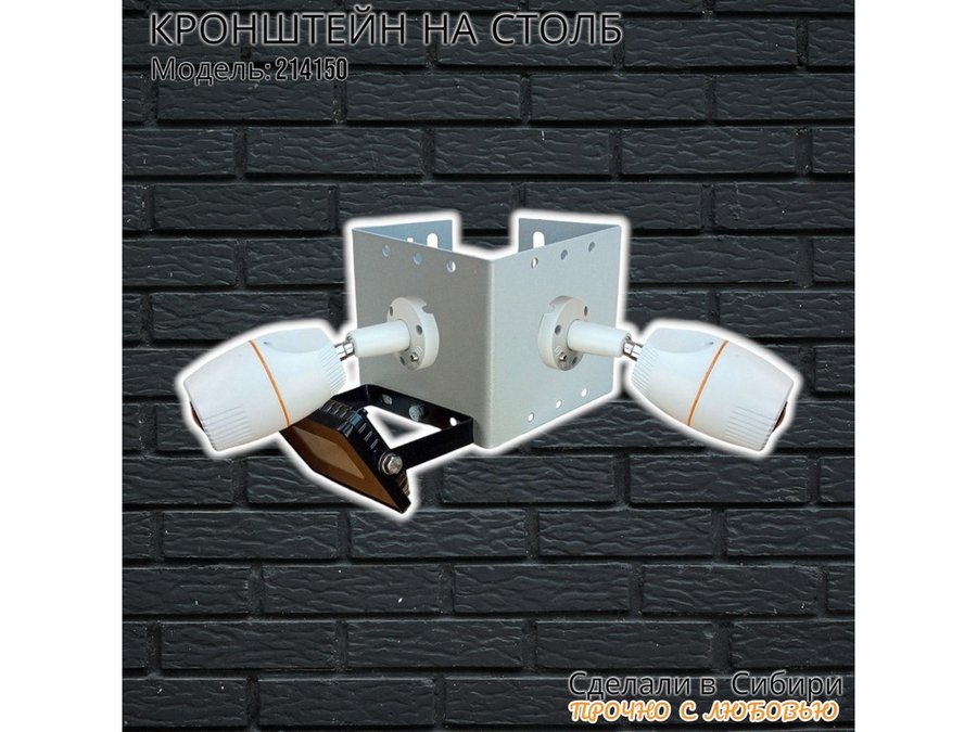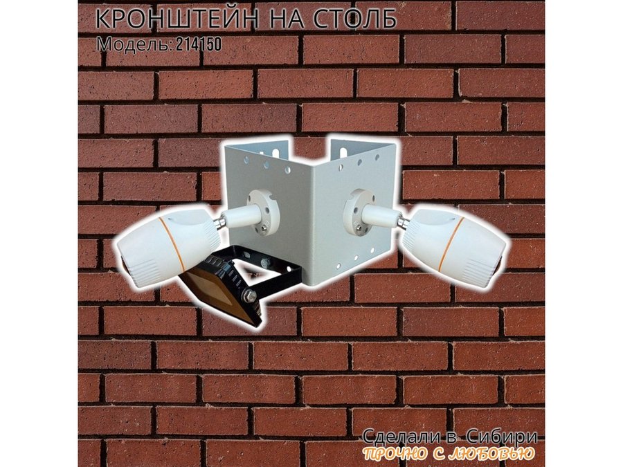 - Кронштейн для двух камер и прожектора, крепится при помощи СИП ленты монтажной на квадратный или круглый столб.