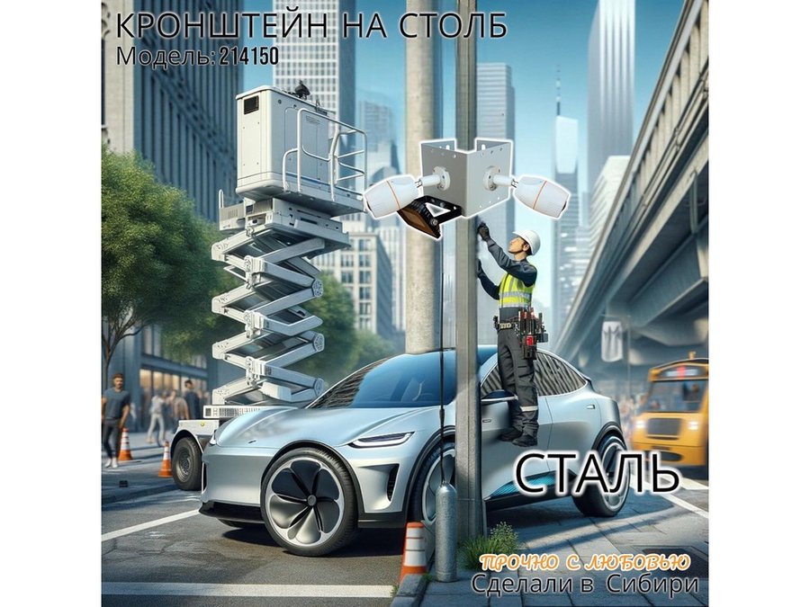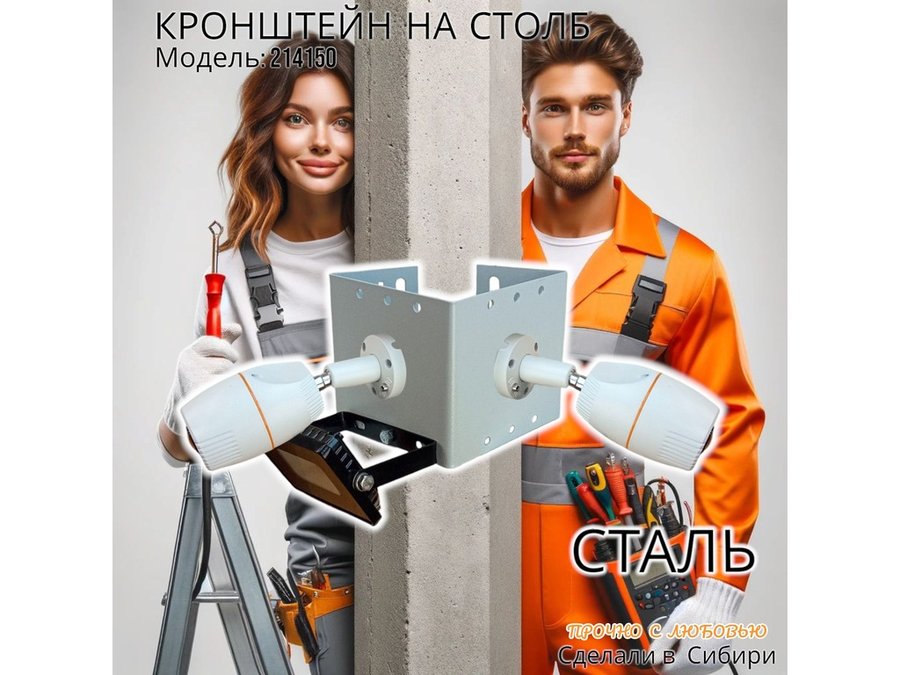 - Кронштейн позволяет быстро зафиксировать камеры видеонаблюдения или прожектор на столбе, не сверля его.