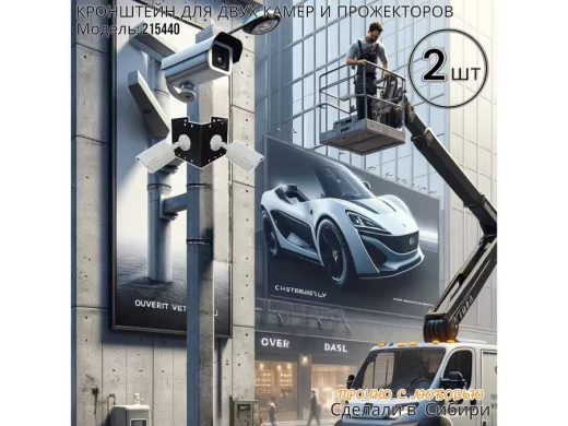 • Кронштейн для двух камер и прожектора, крепится при помощи СИП ленты монтажной на квадратный или круглый столб.