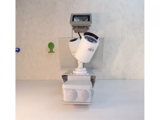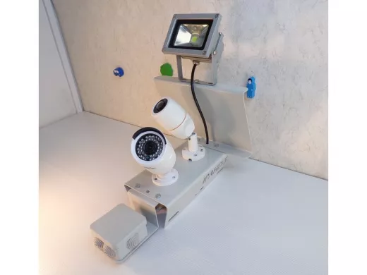 Кронштейн для двух камер и прожектора на столб с козырьком и пластиной серый "IPAHD-5-214548"