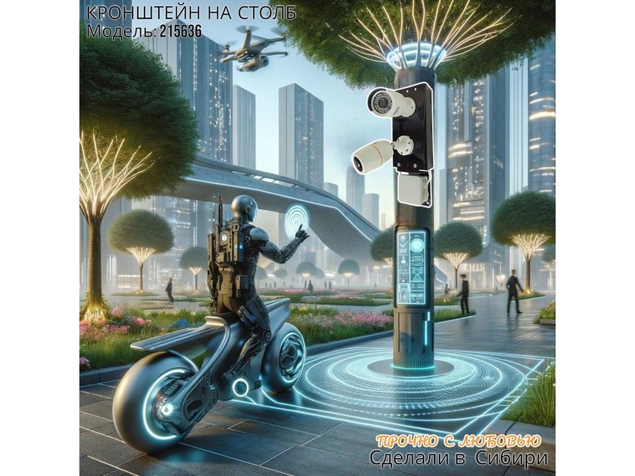 Кронштейн с пластиной для монтажной коробки для крепления двух камер и прожектора на столб при помощи СИП - ленты или хомутов