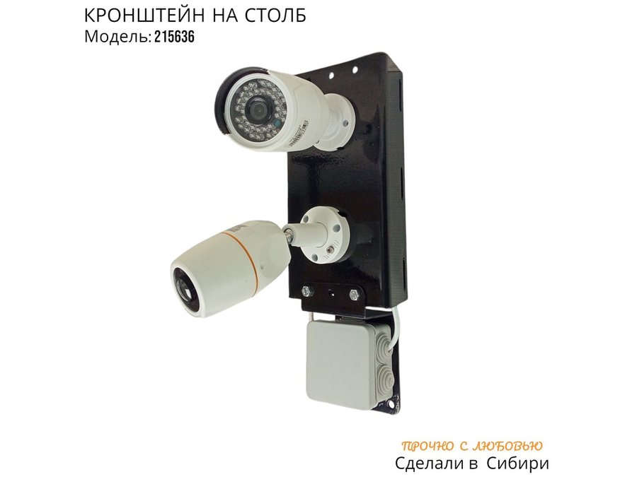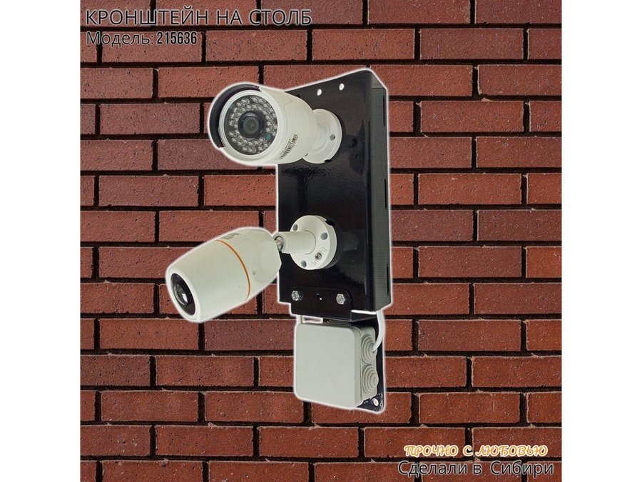 Кронштейн для двух камер и прожектора на столб с пластиной для гермокоробки черный IPAHD-5-215636
