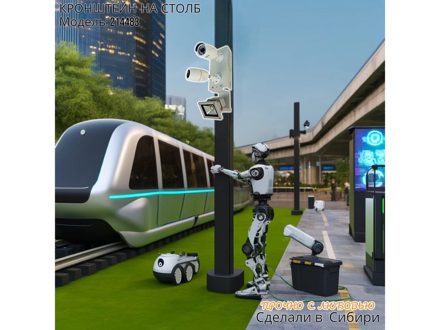 В корзину Купить в 1 клик Кронштейн для двух камер на столб с пластиной под прожектор "IPAHD-5-214482" прочная сталь, черный