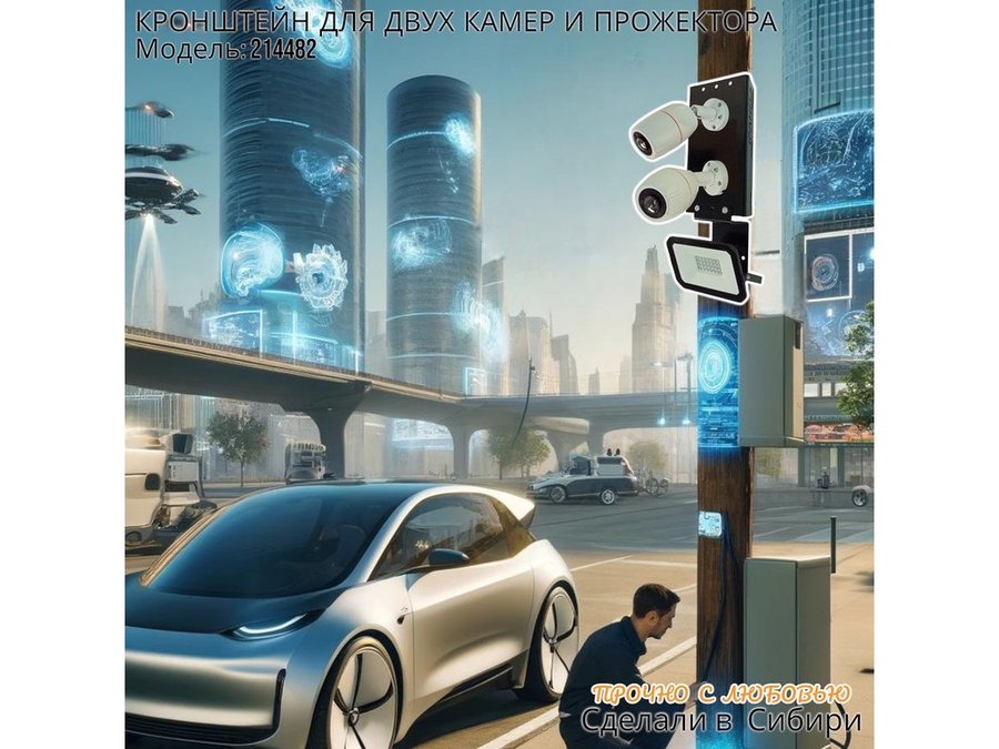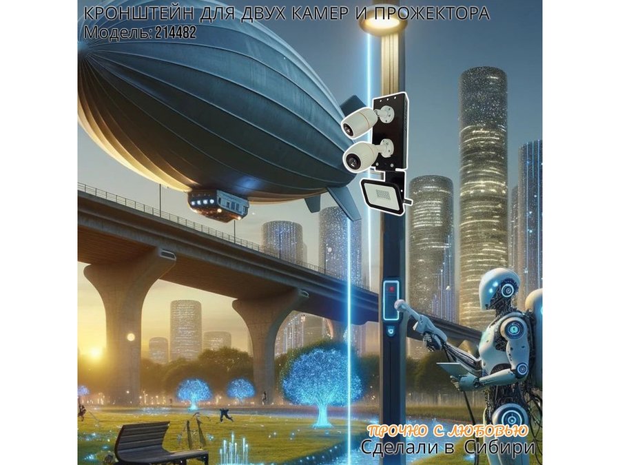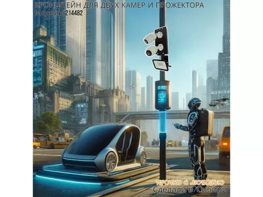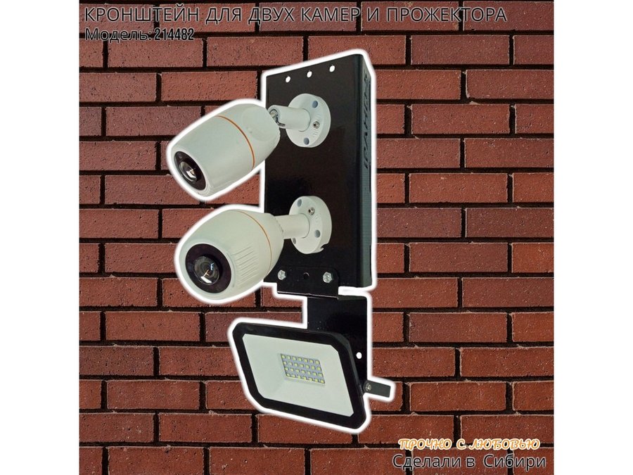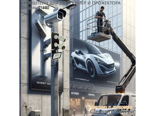 В корзину Купить в 1 клик Кронштейн для двух камер на столб с пластиной под прожектор "IPAHD-5-214482" прочная сталь, черный