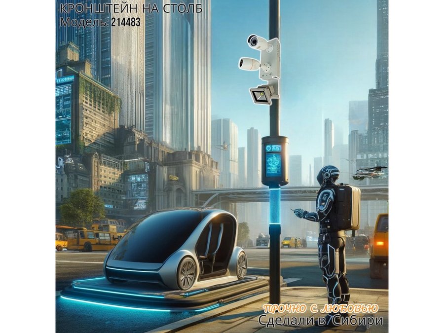 - Кронштейн крепится при помощи монтажной СИП ленты на квадратный железобетонный или круглый столб.