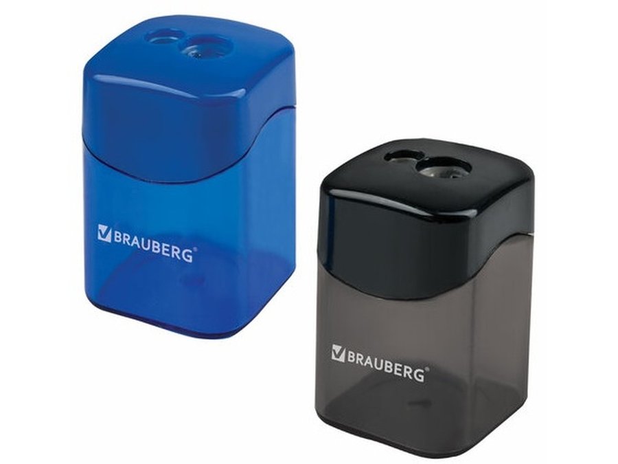 В корзину Купить в 1 клик Точилка "BR-75714" "Win", с большим контейн., прямоугольн, 2 отверстия, дисплей,ассорти чер/син