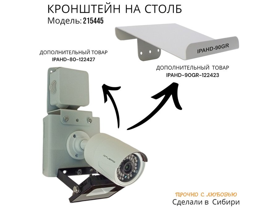 - Кронштейн позволяет быстро зафиксировать камеру и прожектор на столбе, не сверля его.