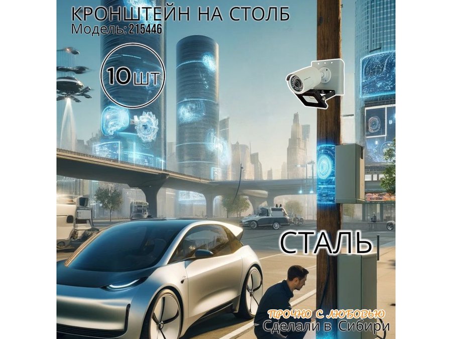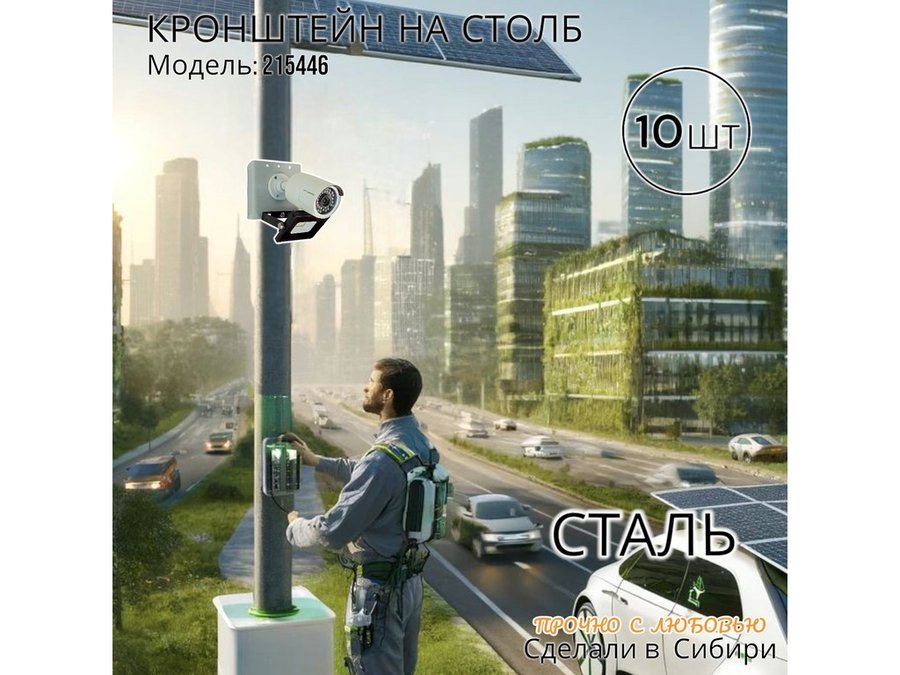 • Кронштейн для 1 камеры и прожектора, крепится при помощи СИП ленты монтажной на квадратный или круглый столб. Подходит для любых камер.