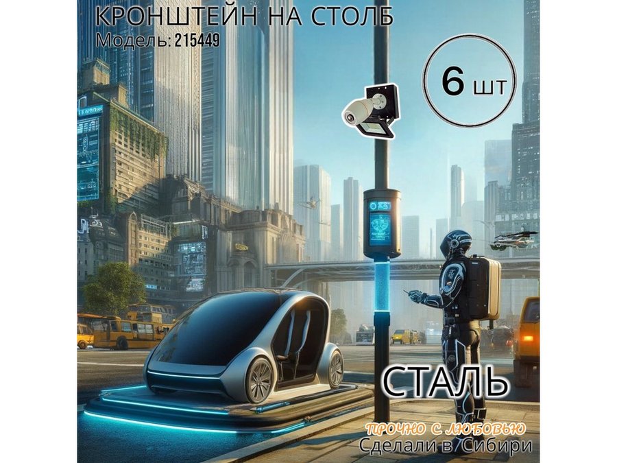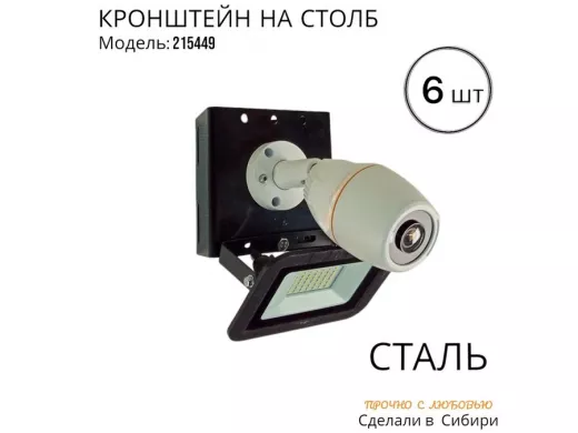 - Кронштейн для 1 камеры и прожектора, крепится при помощи СИП ленты монтажной на квадратный или круглый столб. Подходит для любых камер.