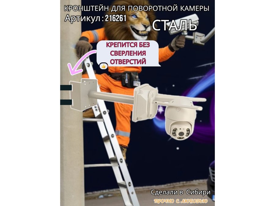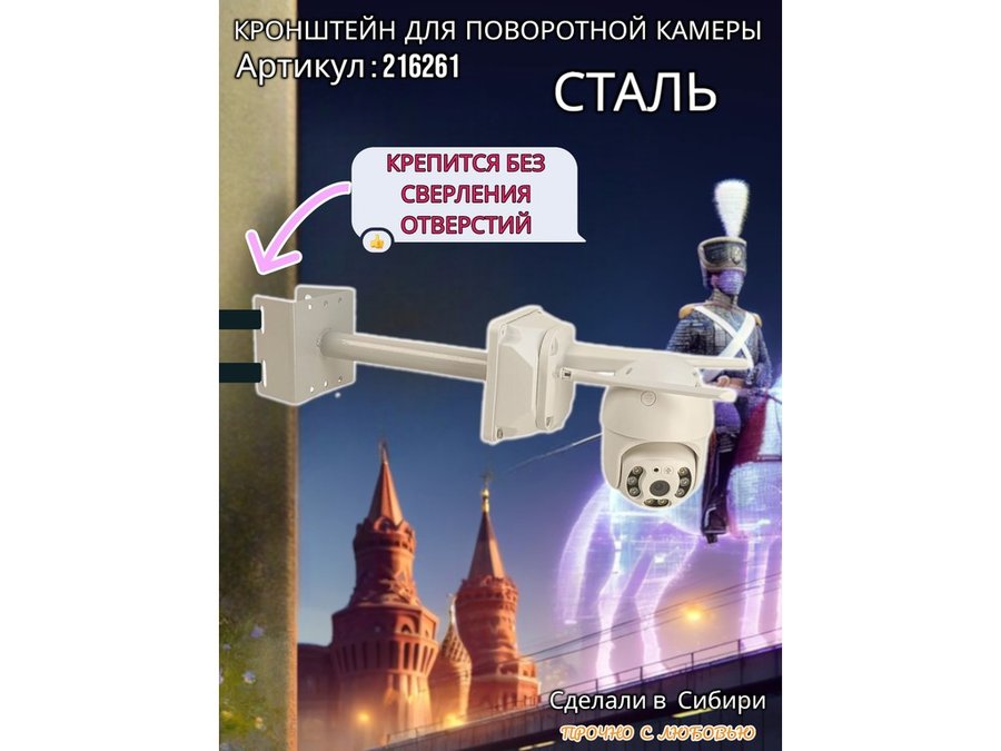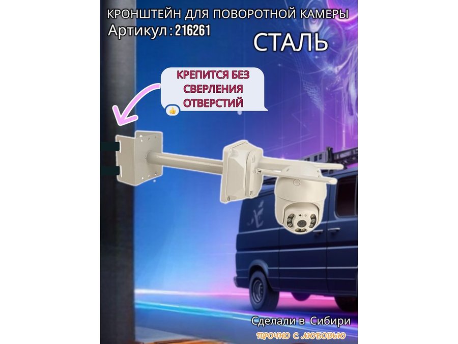 • Стальной кронштейн позволяет вынести камеру от столба на 25 см.