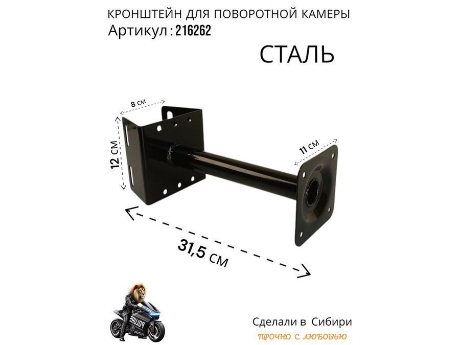 - Стальной кронштейн позволяет вынести камеру от столба на 25 см.
