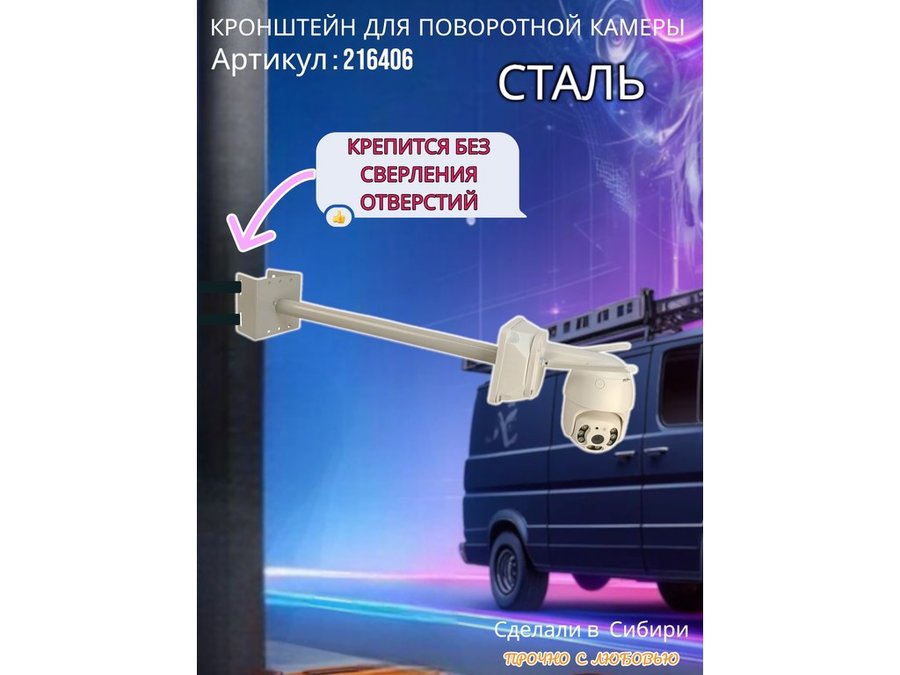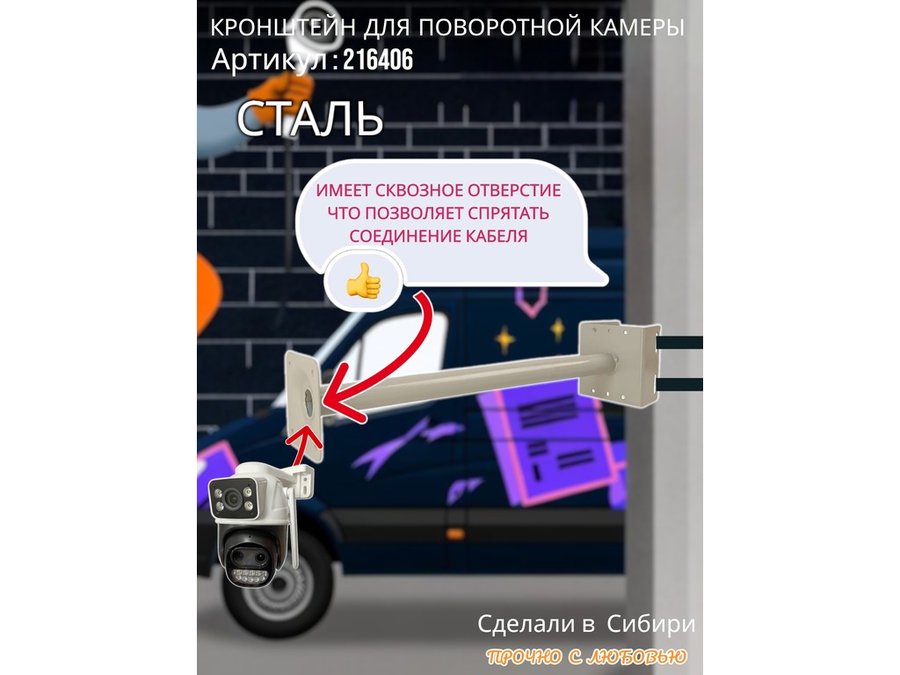 - Стальной кронштейн позволяет вынести камеру от столба на 50 см.