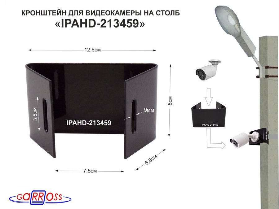 В корзину Купить в 1 клик Кронштейн мини для камеры на столб "IPAHD 213459" черный под СИП-ленту, вылет 0,08м, 75мм