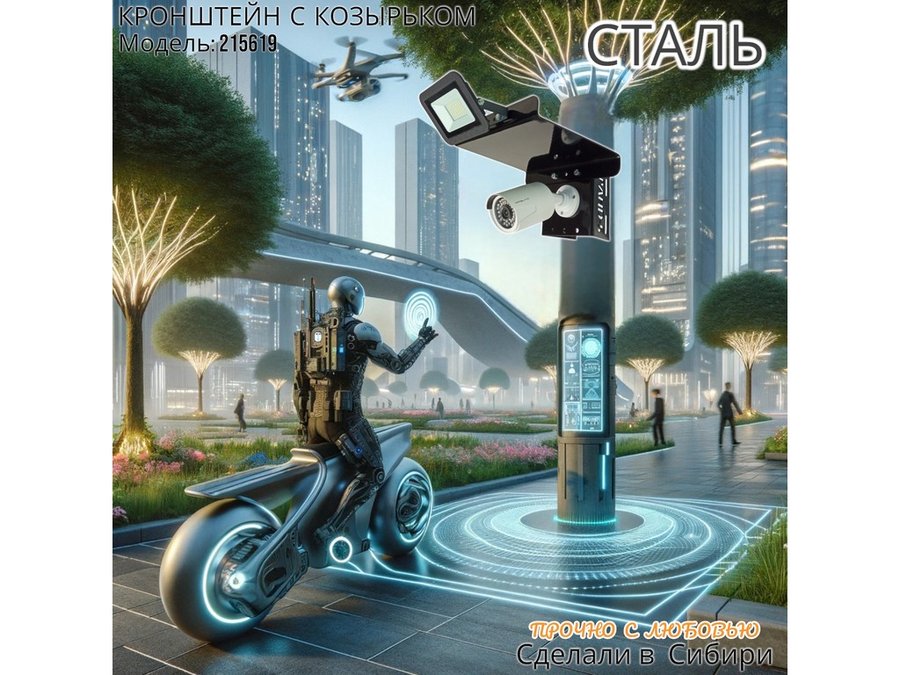- Кронштейн позволяет быстро зафиксировать камеру и прожектор на столбе, не сверля его.