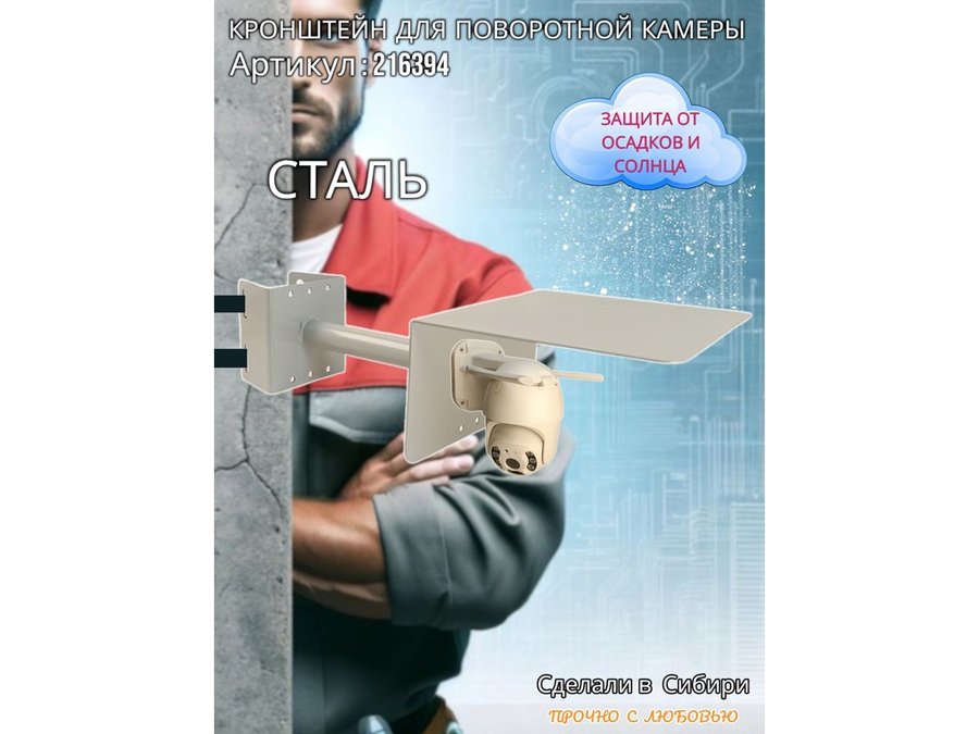 В корзину Купить в 1 клик Кронштейн на столб для поворотной камеры с козырьком и вылетом 100 см "HIWOLL-217394" серый, сталь