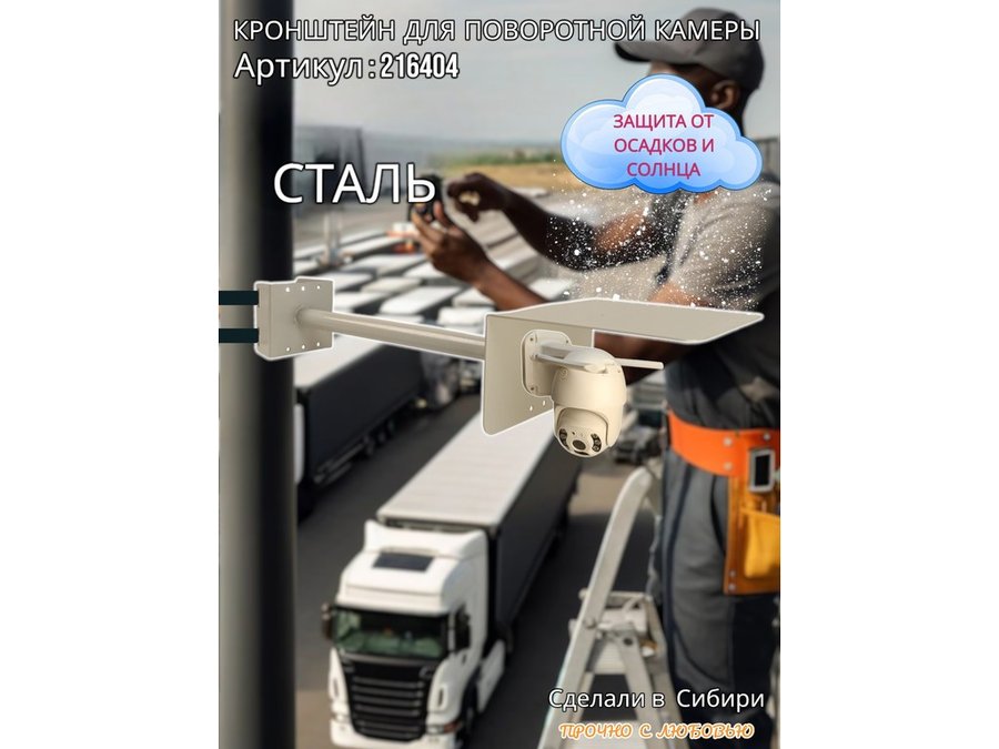 - Стальной кронштейн позволяет вынести камеру от столба на 50 см.