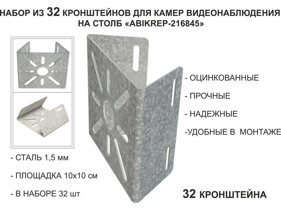 Набор 32 шт. Кронштейн оцинкованный для камеры на столб "ABIKREP-216845" 100х104мм, сталь,под хомуты