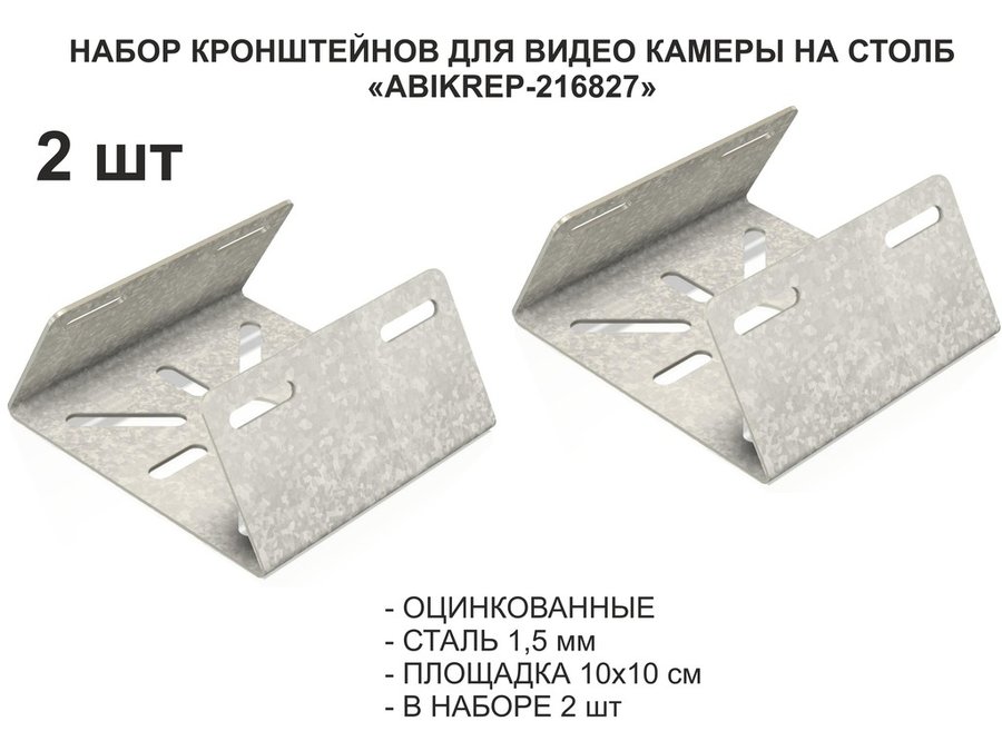Набор 2 шт. Кронштейн оцинкованный для камеры на столб "ABIKREP-216827" 100х104мм, сталь,под хомуты