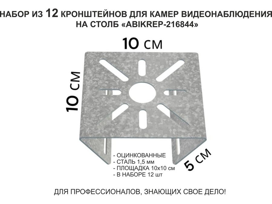 Набор 12 шт. Кронштейн оцинкованный для камеры на столб "ABIKREP-216844" 100х104мм, сталь,под хомуты