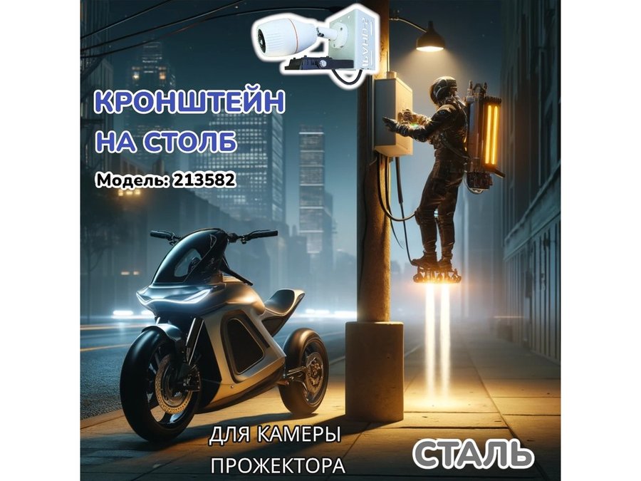 • Кронштейн для одной камеры и прожектора, крепится при помощи СИП ленты монтажной на квадратный или круглый столб. Подходит для любых камер: HickVision, HiWatch, Dahua, RVI, Орбита и др.